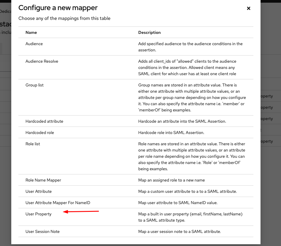 Add a Mapper from Predefined Mapper, Select a user property and provide the following details