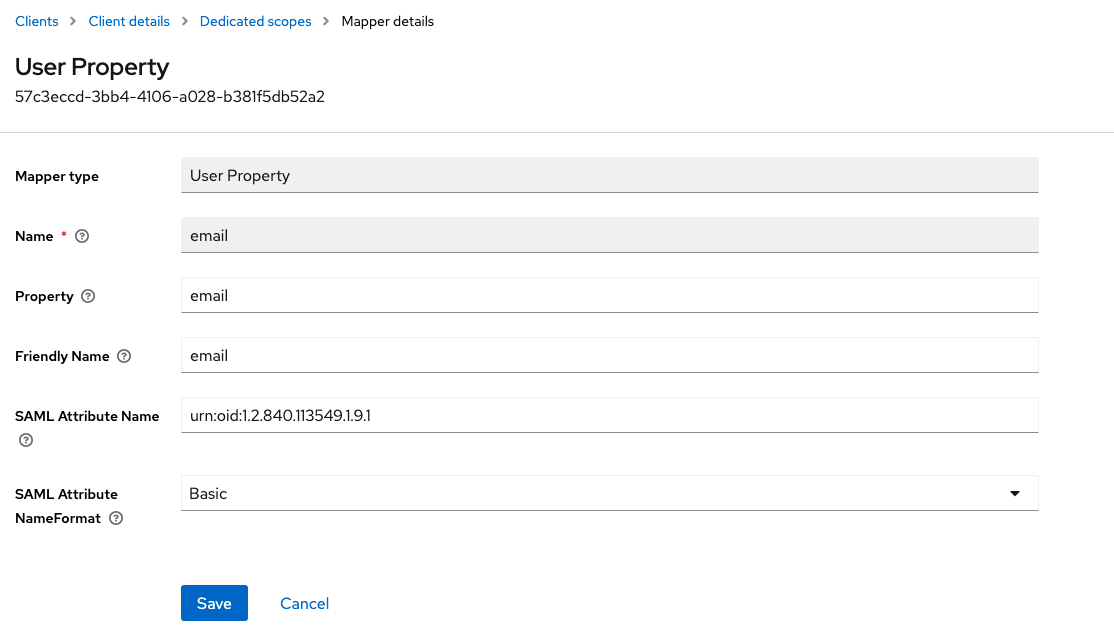 SAML Attribute Name urn:oid:1.2.840.113549.1.9.1