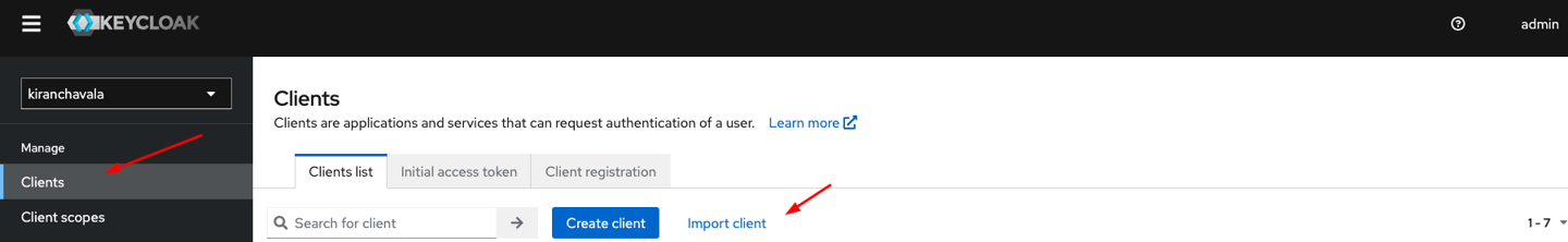 Switch to the created Realm and Create a new client or choose to import an existing client.